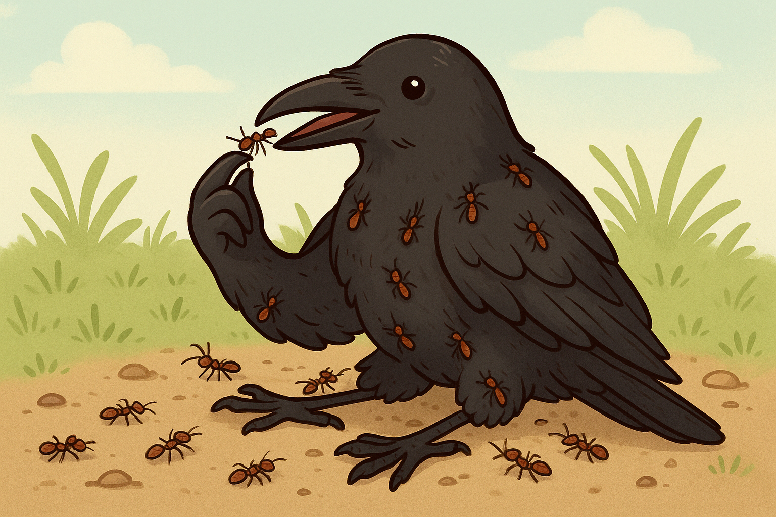 Perilaku Kebiasaan Burung Gagak Mandi Semut